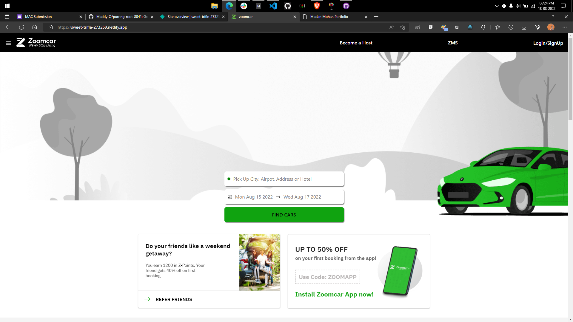Zoomcar is an Indian car sharing platform, headquartered in Bangalore. The company was founded in 2013 by David Back and Greg Moran. It currently operates in 34+ cities.